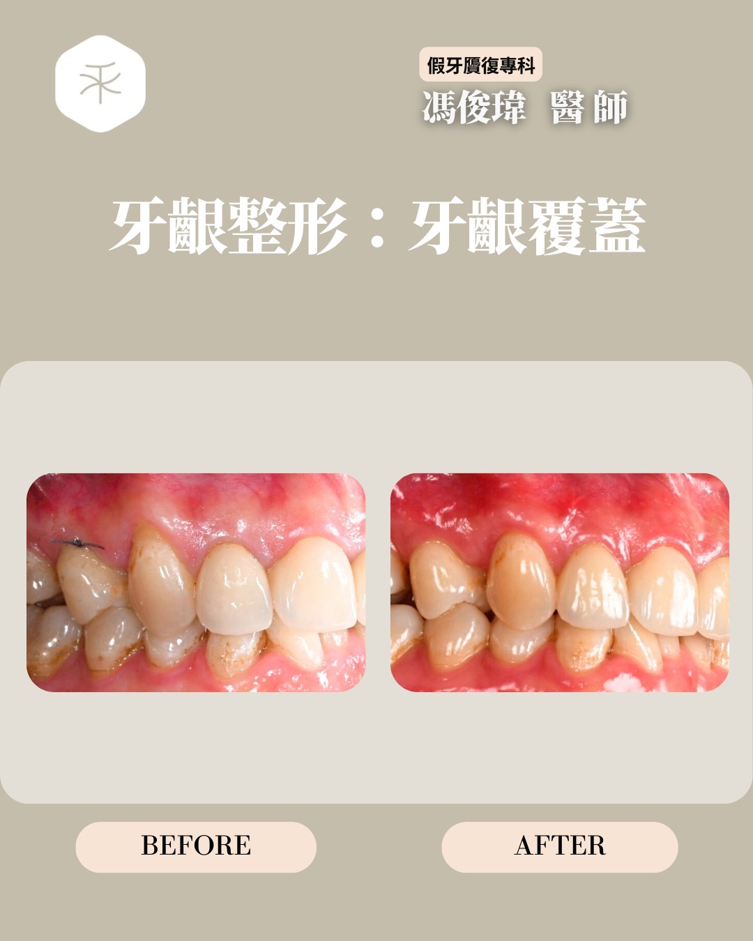 這兩位患者皆屬於牙齦覆蓋不足的情況,因牙齦保護度不夠,使牙齒在視覺上顯得過長,且容易出現敏感不適。經醫師評估後,透過牙齦覆蓋治療,提升牙齦的覆蓋度與保護性,不僅改善外觀比例,也讓口腔感受更穩定舒適。